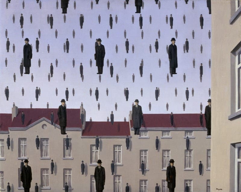 Top image: René Magritte, Golconda (Golconde), 1953, Oil on canvas, 31 1/2 × 39 1/2 in. © C. Herscovici / Artists Rights Society (ARS), New York. Image from The Menil Collection.